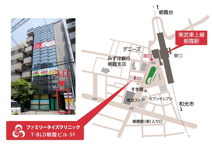 東武東上線 朝霞駅南口から徒歩1分の駅近クリニックです。